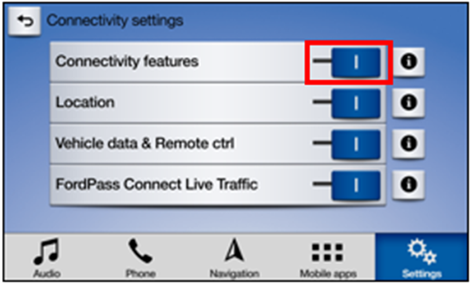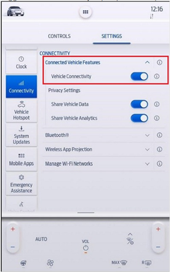 Toggle "Vehicle Connectivity" to your preference (ON or OFF