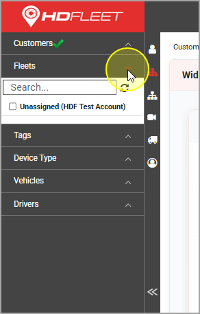 - Open the Side Menu by clicking the >> icon in the middle-left of the screen and drop down Fleets. Choose a fleet (group of vehicles) under the Fleet tab or you can pick individual vehicles from the Vehicle tab.
