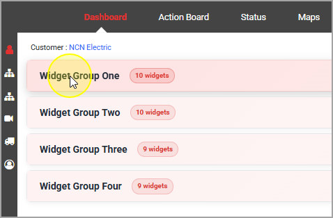 - There are multiple widget groups. To expand a widget group, simply click on the red bar.