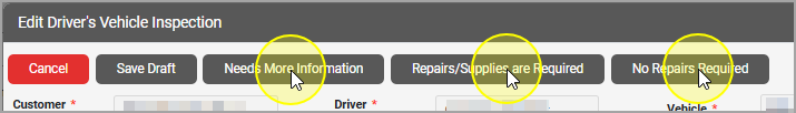 - If you need more information from the driver, you would choose the Needs More Information button, and this will send the report back to the driver for them to add either more notes or images.