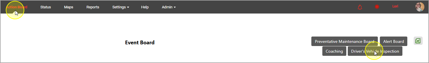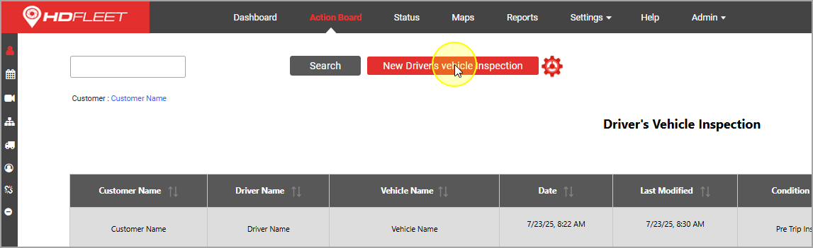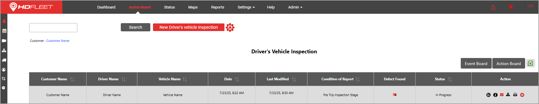 - Log in to https://hdfleet.net, and click on Action Board. From there, select Driver's Vehicle Inspection.