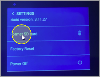 - After a few moments the camera should say “Factory Data Reset”. The camera’s screen will stay black for a few minutes. Wait until the device reboots itself and starts showing the white car icon again.