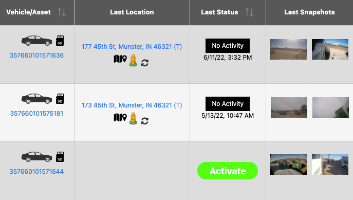 This tab displays a list of all the active and inactive vehicles under your account. The vehicles that have a green Activate button are not currently active.