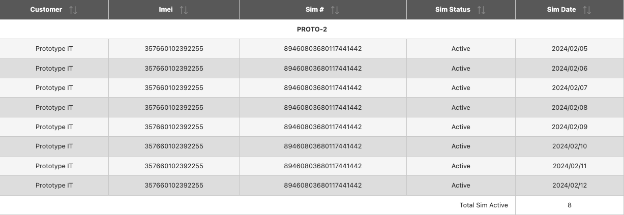 You can select your date range and see which days the vehicle was active. It will say either Active or Inactive under Sim Status.