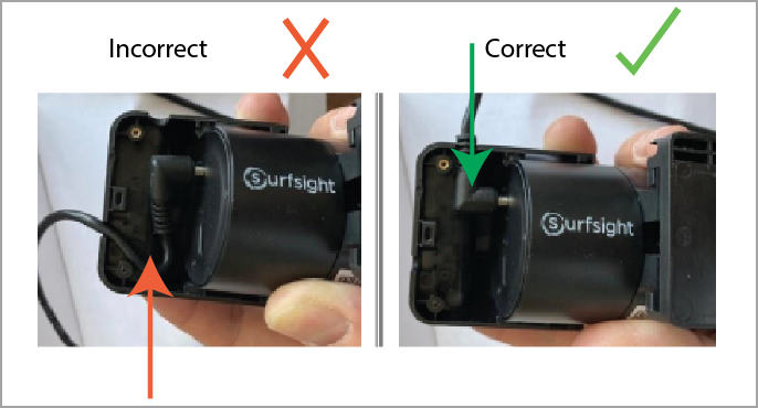 When you are connecting the dash cam to a power source, make sure the cable is plugged in as shown.