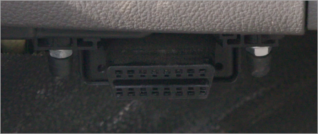The port is usually found in the driver area, at or below knee level.