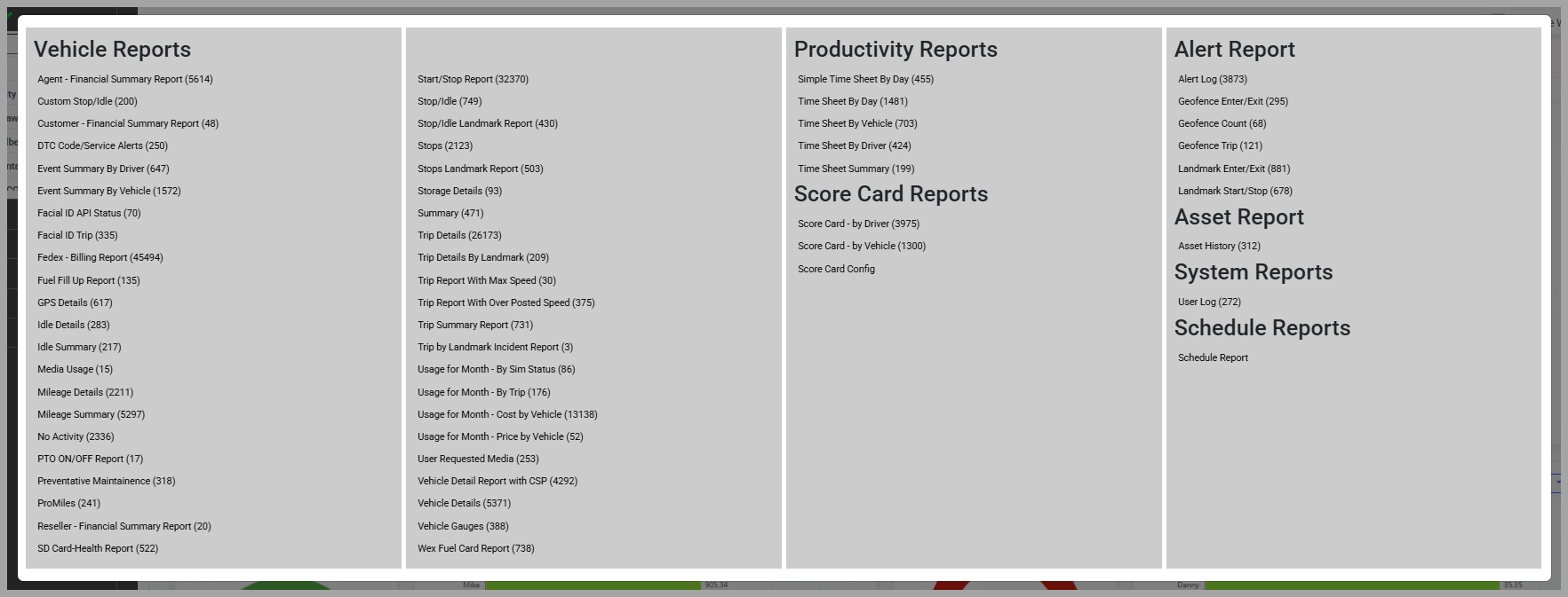 With our platform, you fleet's overall statistics are represented by graphical charts and updated in real-time. You can also generate the same data for individual vehicles using the side menu. Viewing your Fleet Stats: Select Dashboard from the top ...