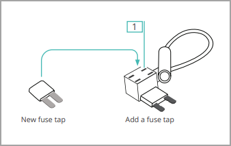 Use the Add-A-Fuse kit included in the hardware installation kit for a more secure installation. This kit provides a fuse slot for the existing circuit (#2 in the picture below) and another fuse slot for the new circuit for the dash cam (#1 in the picture below).