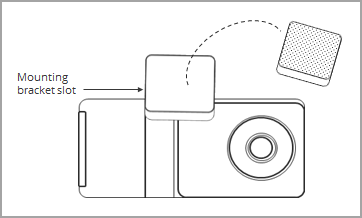 Remove the cover on the adhesive tape and mount the dash cam onto the windshield.