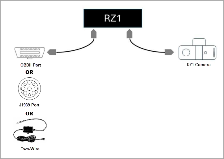 - Power Cable: Connects the RZ1 Vehicle Hub to the vehicle's diagnostic (OBDII) port, supplying power and enabling telematics data collection.